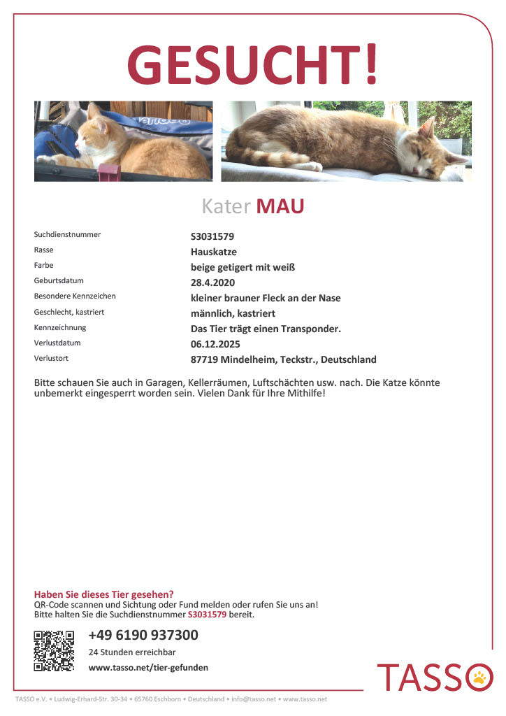 Melden Sie sich bitte unter 08261-5508, wenn ihre Katze dabei ist.